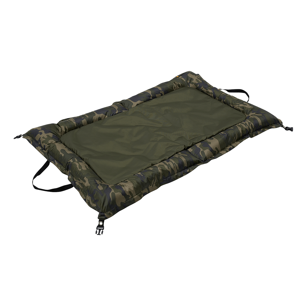 Tapis de sortie avec un grand rembourrage de marque Prologic en couleur vert et design camouflagespécial pour la pêche à la carpe.