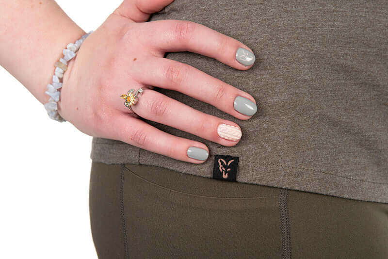 T-shirt femme avec col en V de la marque Fox modèle WC en couleur vertspécial pour la pêche à la carpe.