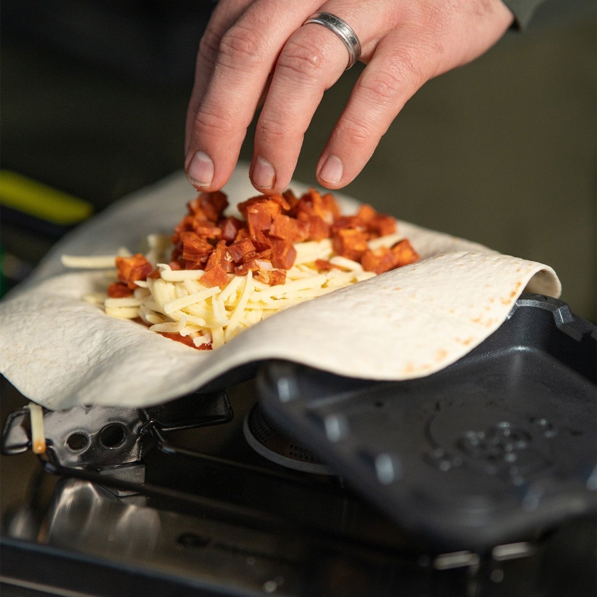 - Il vous permet de préparer facilement des pochettes remplies et scellées telles que des toasts, des empanadas, des wraps, des calzones, des tortillas farcies ou des viandes cuites au four, en obtenant une cuisson uniforme et croustillante des deux côtés.