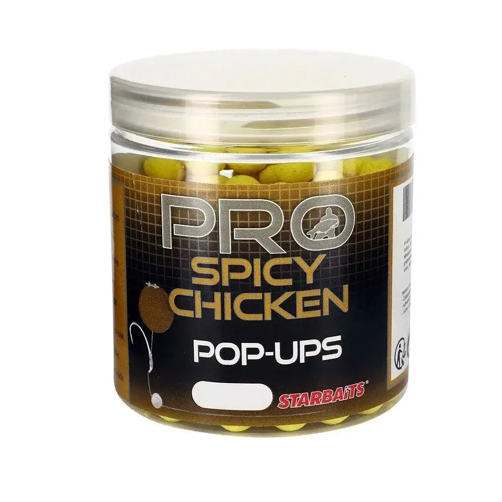 Pop Ups flotteurs de 14 mm de la marque Starbaits gamme Probiotic saveur poulet épicé en couleur jaunespécial pour la pêche à la carpe.