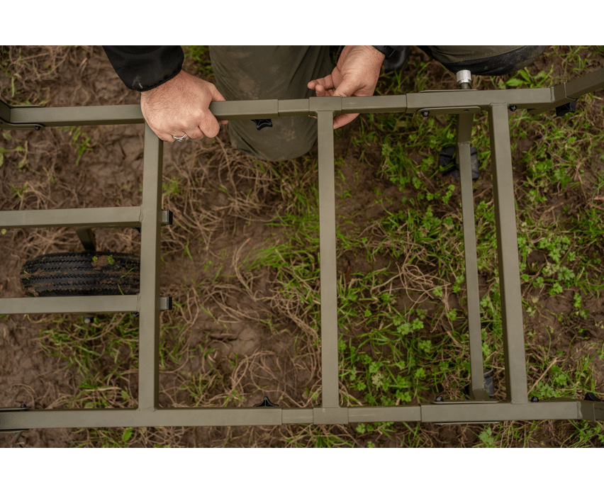- Équipé de pneus robustes et de grands pieds de type boue Korum pour une meilleure stabilité sur les terrains accidentés