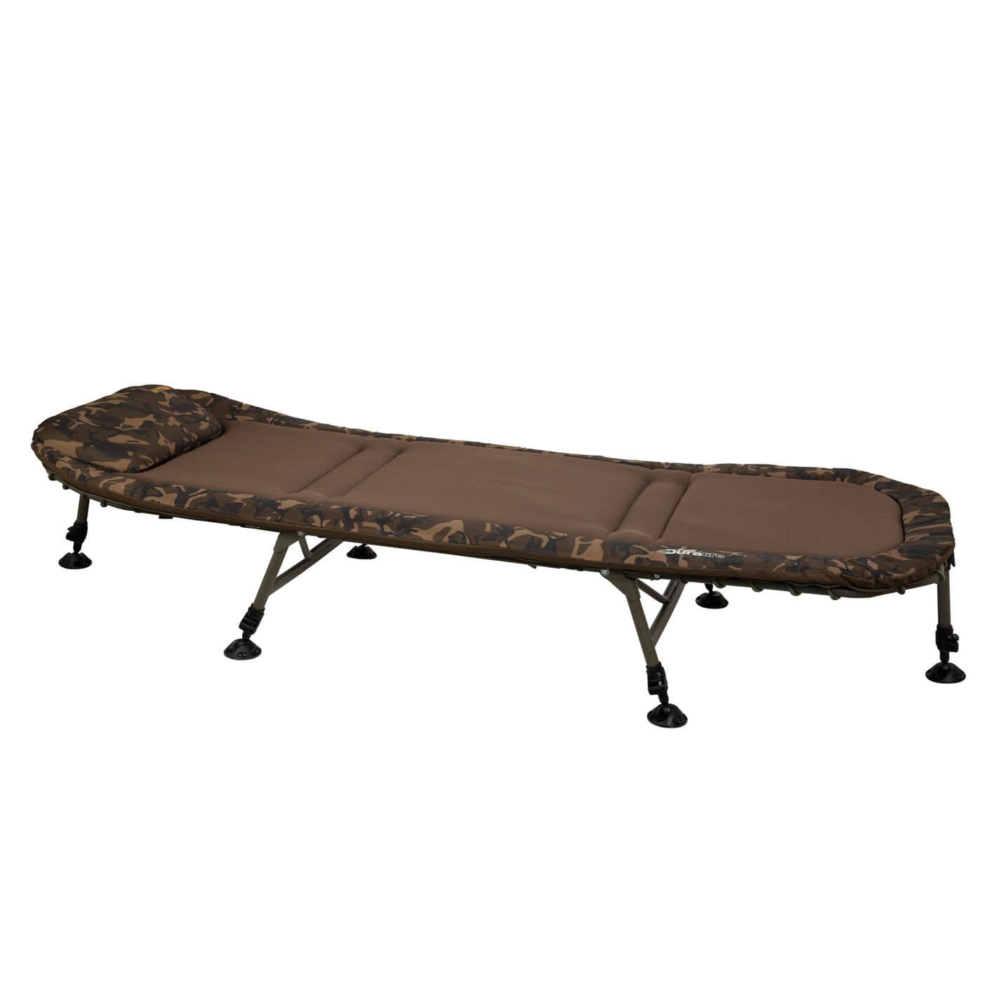 Bed chair de la marque Fox modèle Duralite en couleur vert camouflagespécial pour la pêche à la carpe.