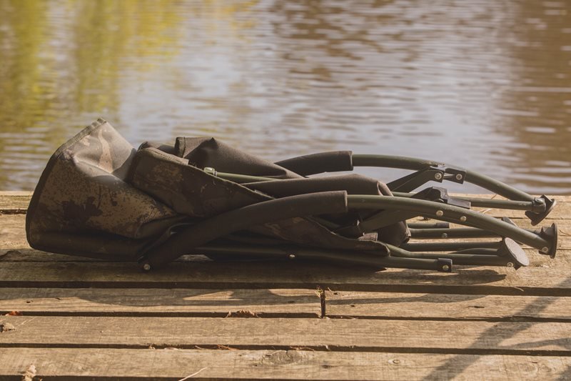Chaise de la marque Solar, modèle Undercover, àCouleur camouflage, parfait pour la pêche à la carpe.
