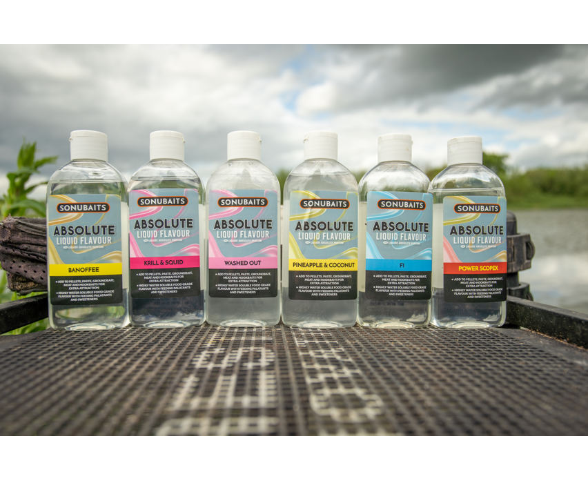 Liquide de la marque Sonubaits, gamme Absolu, parfait pour booster vos appâts de carpfishing.
