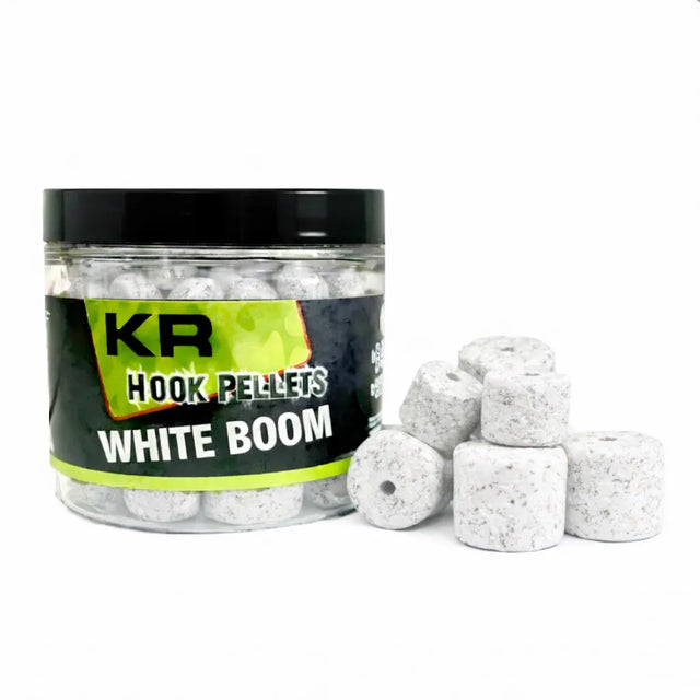 Pot de pellets forage de marque Krom Quality saveur White Boom 14 et 20 millimètres, notamment pour la pêche de la carpe.