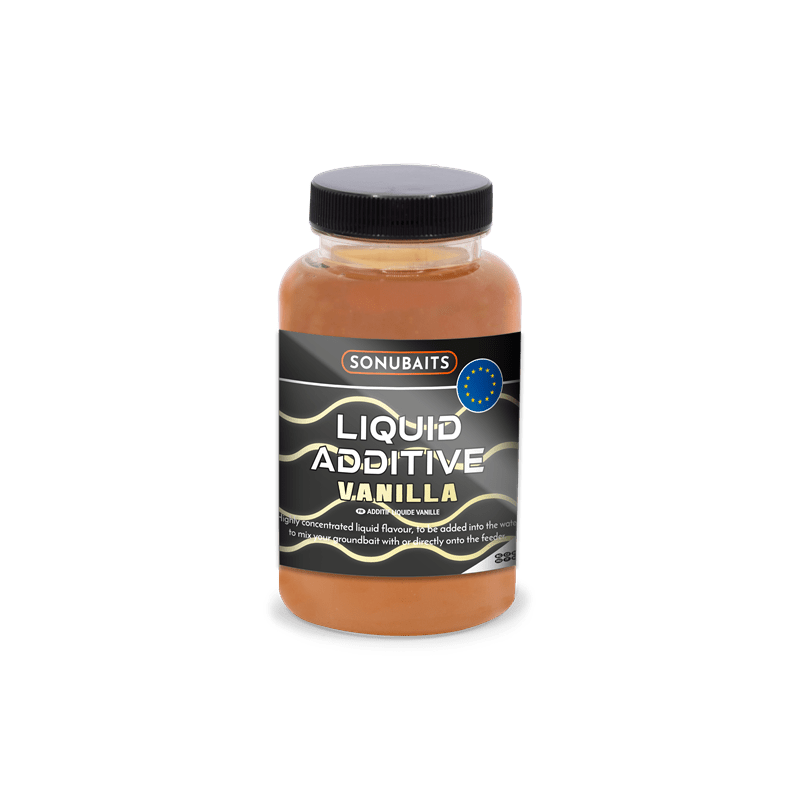 Additif de marque liquide Sonubaits, goût Vanille, spécial pour l'utilisation de vos appâts de pêche à la carpe.