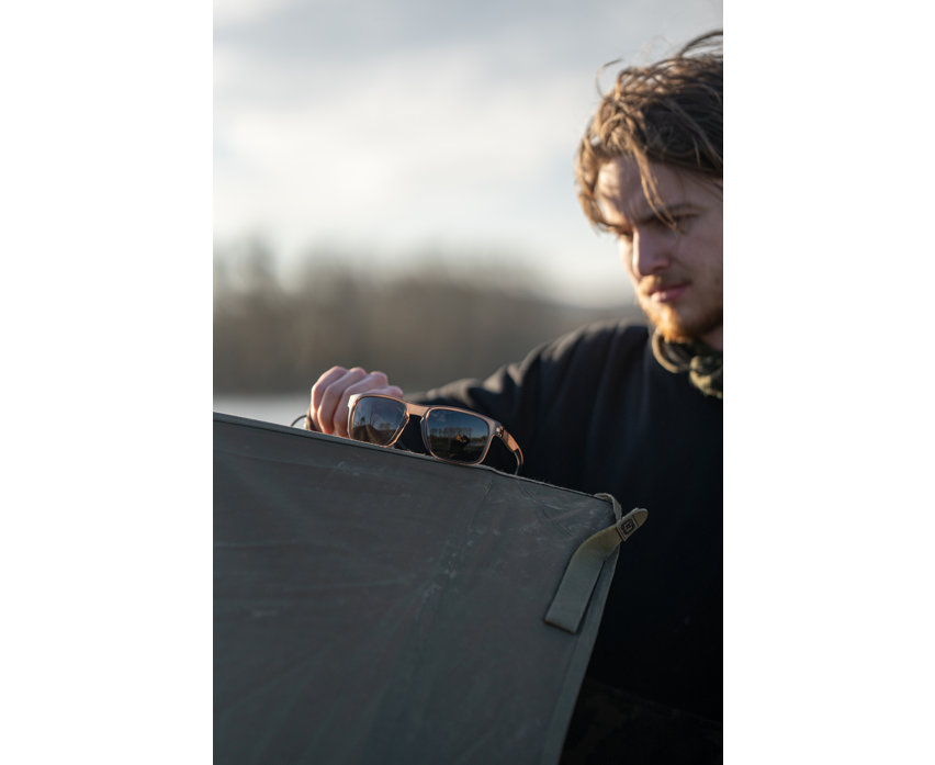 Lunettes lunettes de soleil de la marque Avid Carp, modèle SeeThru Mirage à Couleur brun, avec des lentilles gris fumé, parfait pour vos sessions de pêche à la carpe.