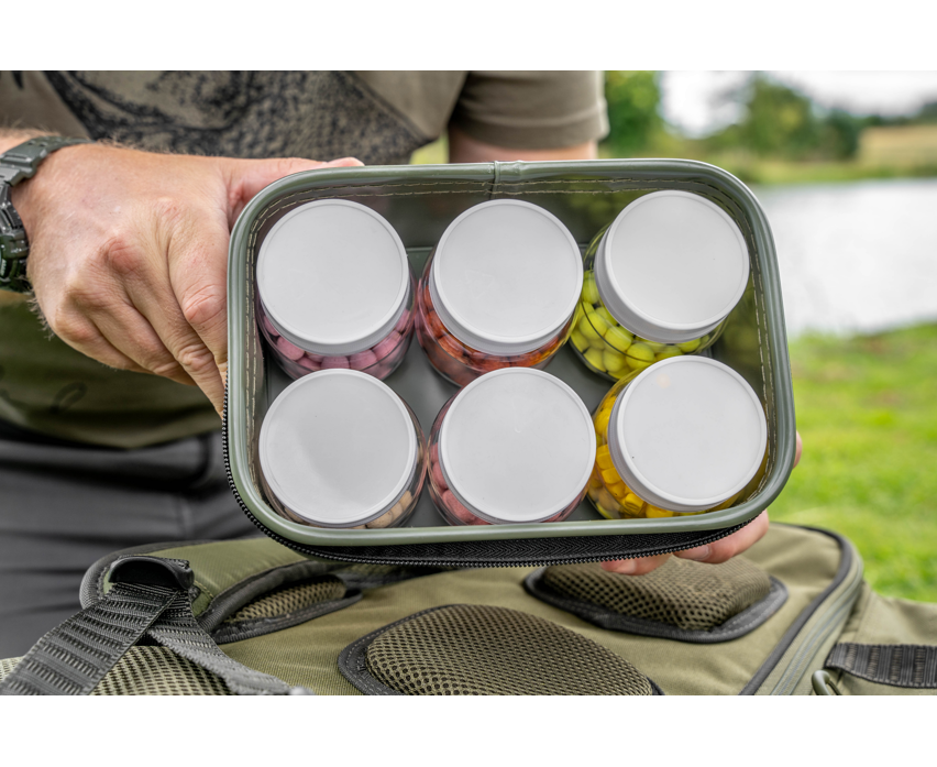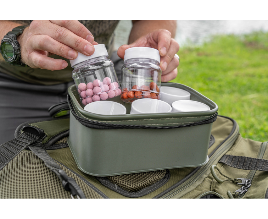 - Comprend des pots à appâts pour le stockage sécurisé des appâts à hameçons.