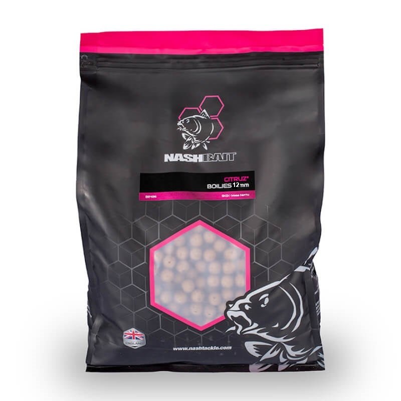 Sac de 1 kilo de Bouillette de la marque Nash saveur Citruz sur Couleur naturel 12 millimètres sous forme d'appât alimentaire pour les quatre saisons de l'année, notamment pour la pêche à la carpe.