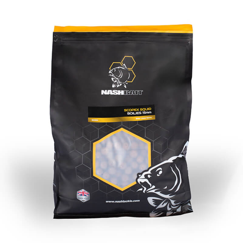 Sac de 1 kilo de Bouillette de la marque Nash saveur Scopex Squid à Couleur naturel de 12 millimètres, spécialement pour la pêche à la carpe.