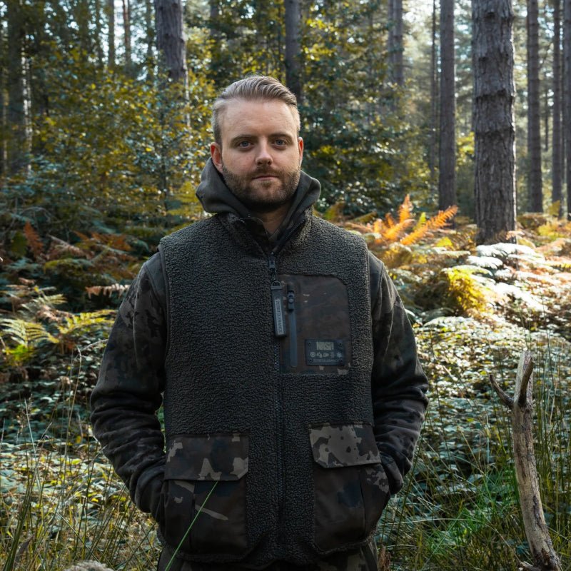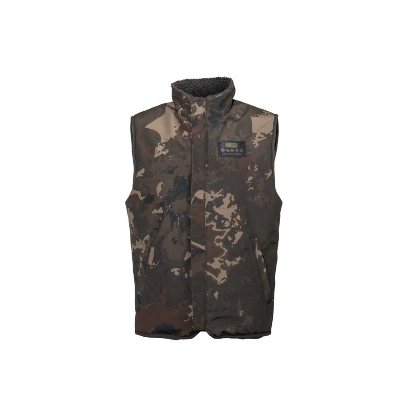 Gilet imperméable sans manches de la marque Nash modèle ZT Sherpa avec motif en Couleur camouflagespécial pour la pêche à la carpe.