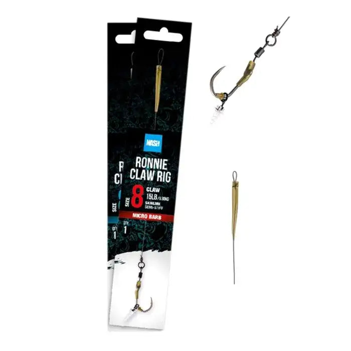 Hameçons montés de la marque Nash modèle Ronnie Claw Rigspécial pour la pêche à la carpe. Disponible en taille 6.