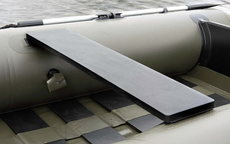 - Comprend des rames en aluminium, un siège en bois noir fixe et un sol de lattes de montage rapide