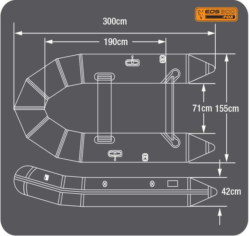 Bateau marque gonflable Fox, modèle EOS 300, Parfait pour vos séances de carpfishing.