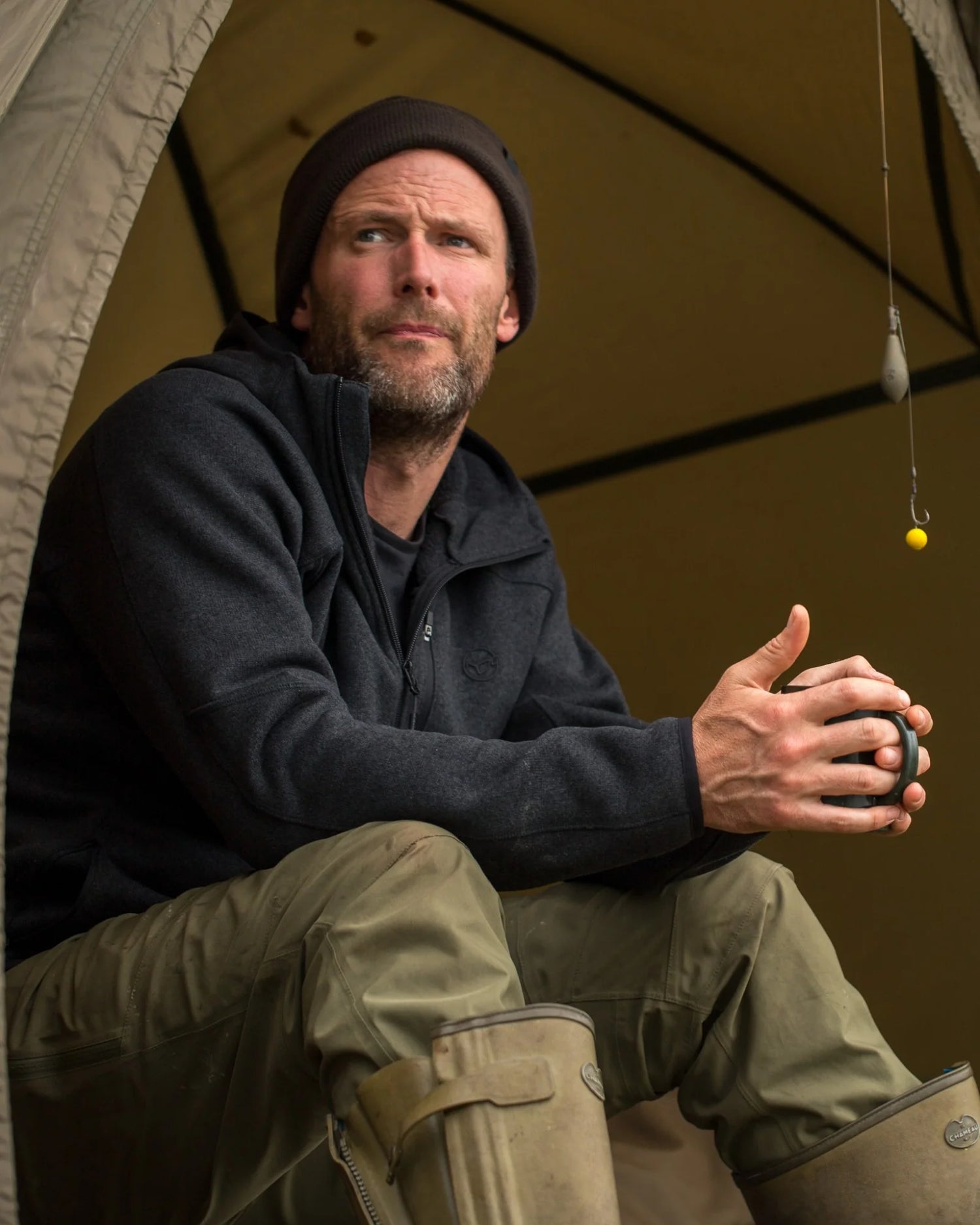 Veste polaire de la marque Korda modèle Kore en laine polaire en Couleur noirspécialement pour la pêche à la carpe.