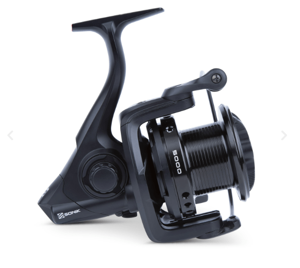 Moulinet de la marque Sonik modèle Xtractor+ 5000 avec une finition en Couleur noir, spécialement pour la pêche à la carpe.