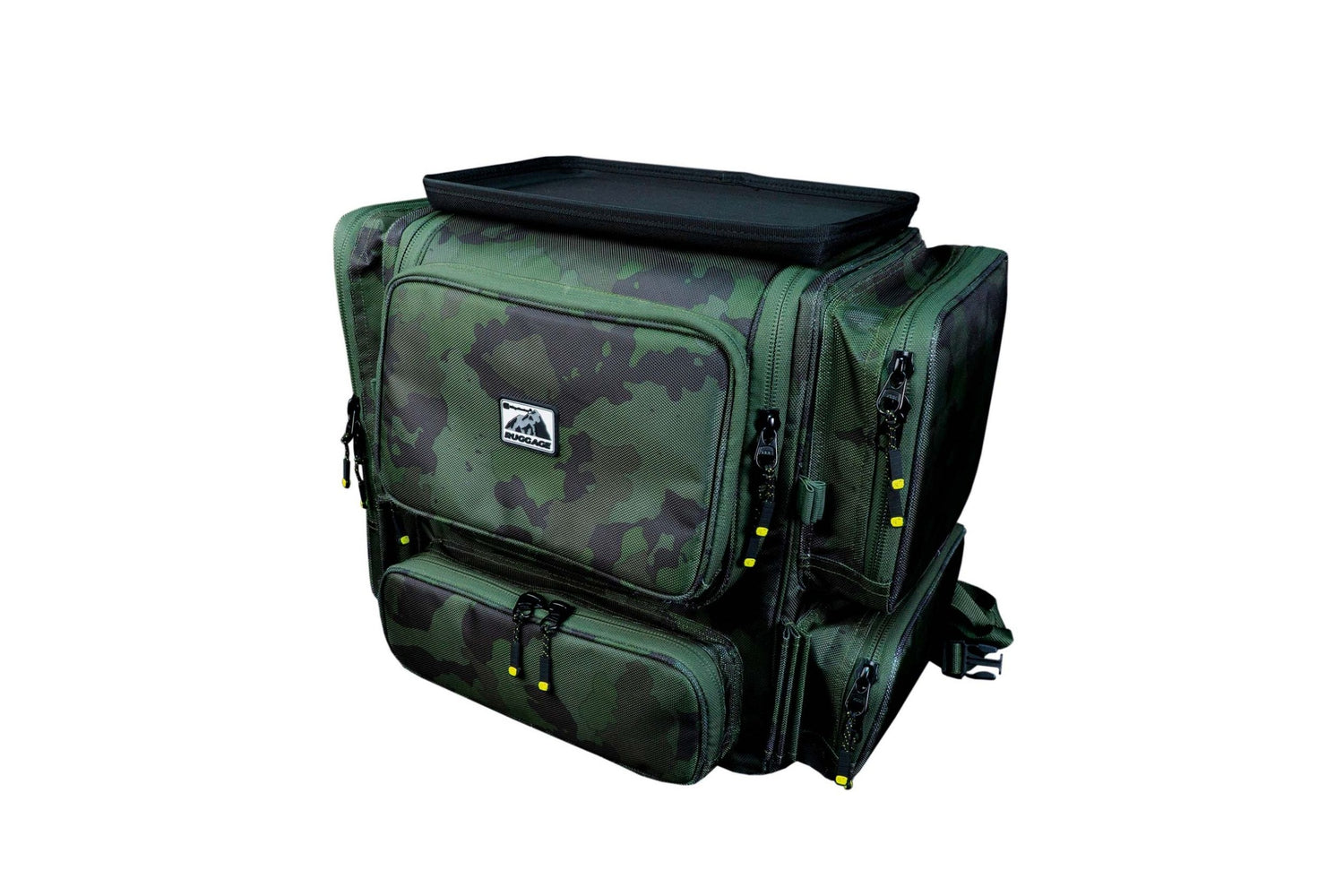 Sac à dos de marque Ridge Monkey Gamme de bagages et mallette d'accessoires de 40 litres en Couleur vert camouflagespécialement pour la pêche à la carpe.
