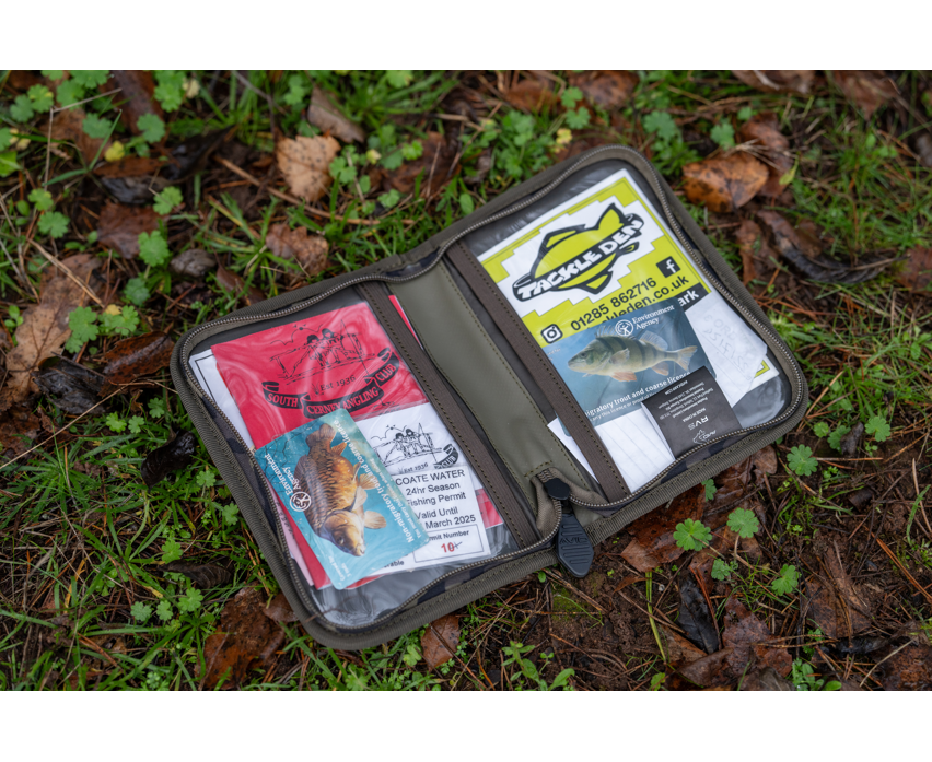 Portefeuille de marques Avid Carp modèle RVS à Couleur kaki, pour ranger votre permis de pêche. Idéal pour ranger et garder en sécurité tous vos documents et votre argent.