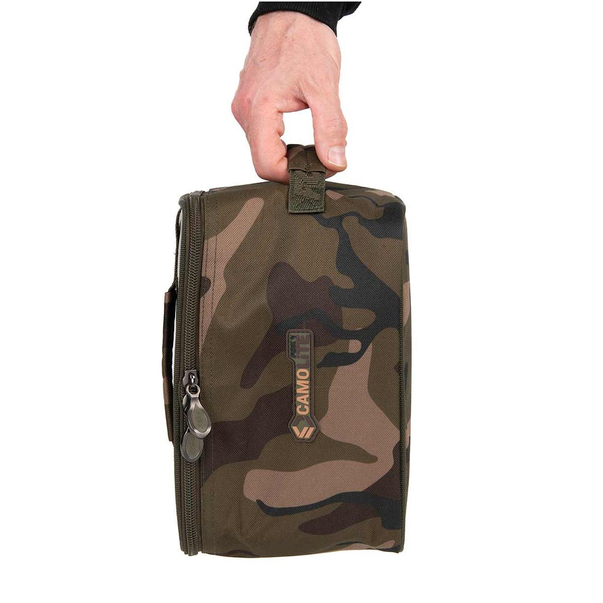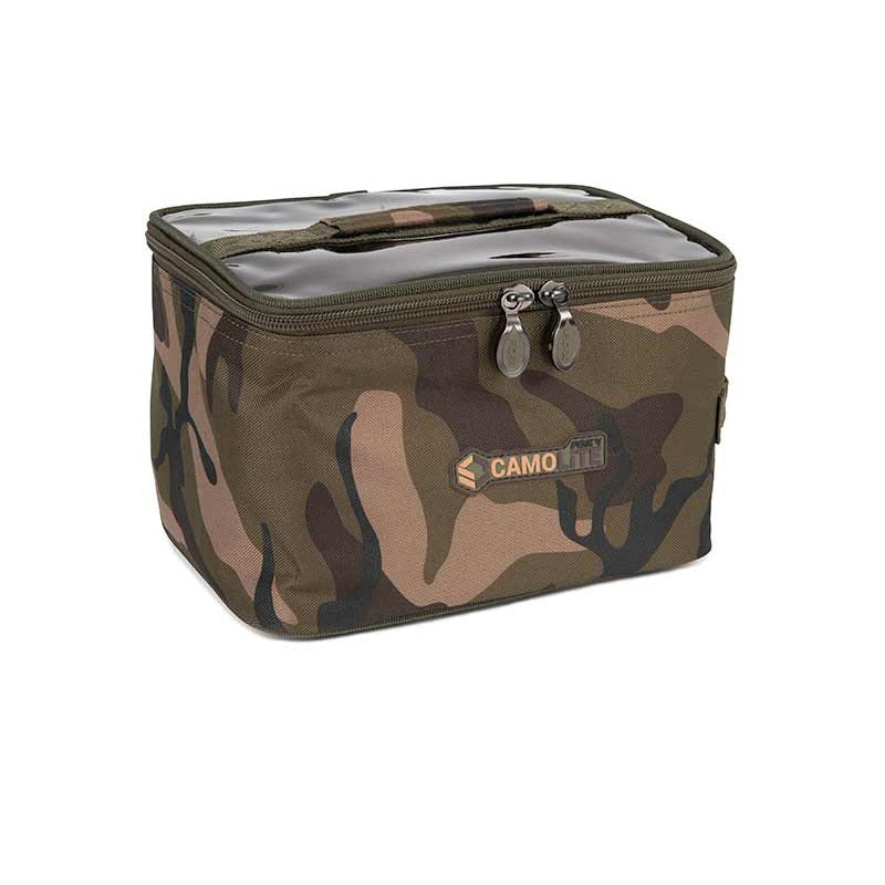 Sac à accessoires de marque Fox modèle Camolite à Couleur camouflageparfait pour ranger toutes sortes d'articles de pêche.