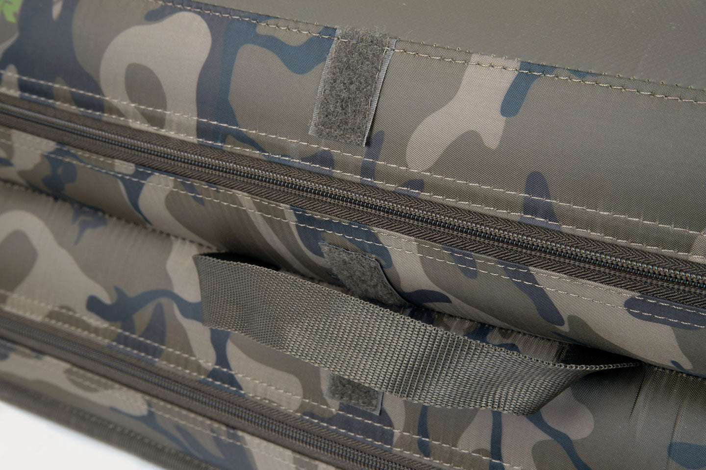 Tapis marque de gonflables Fox, modèle Carpmaster XL, avec un design en camouflage, spécialement pour la pêche à la carpe.