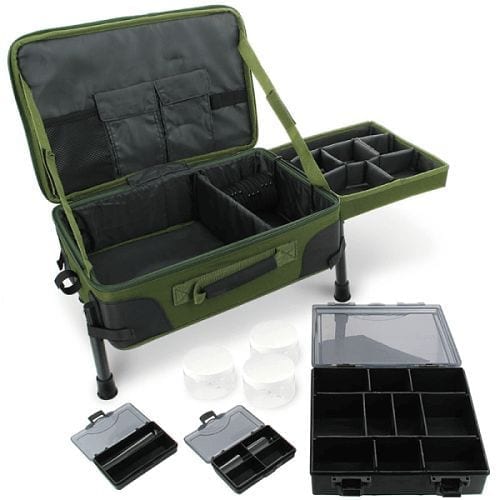 Station de montage avec plusieurs sections de fixation par Velcro. Elle dispose d'un plateau latéral amovible et est équipée du système de fixation de la carpe. Feet réglable. Il est doté d'un plateau latéral amovible et d'un système de fixation réglable. Matériel le rend résistant à l'eau.