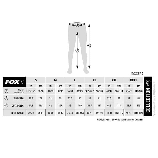 Bas de survêtement de la marque Carpfishing Fox en noir avec des détails de camouflage.