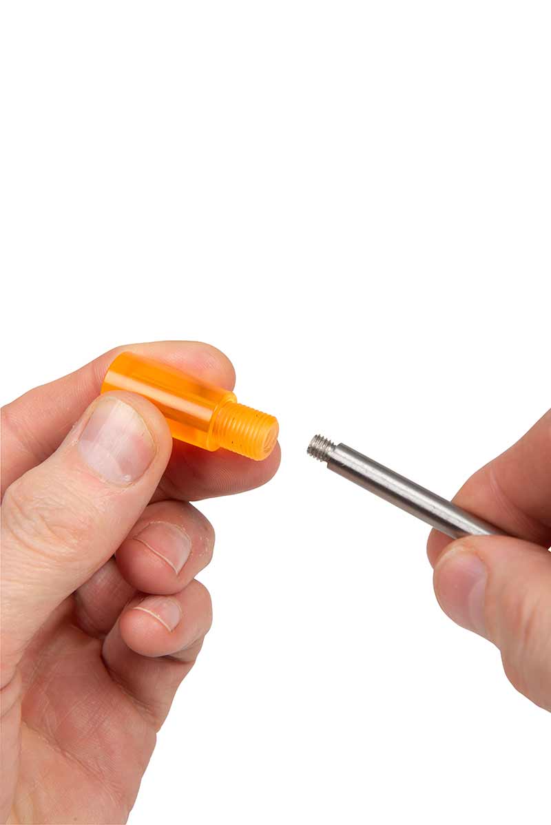 - Capuchon orange fluorescent avec poche isotopique de 25 mm visible même la nuit et sécurisé par un bouchon en caoutchouc