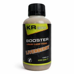 Booster de la marque Krom Quality gamme KR300, saveur LiverBerry, 500 ml, créé pour valoriser vos appâts de pêche à la carpe.