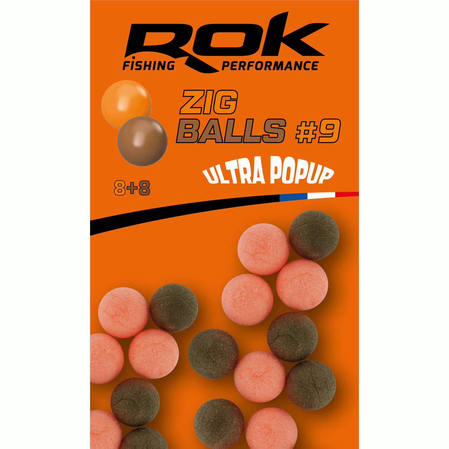 Bouillie flottante de la marque Rok Fishing Zig Ball de taille 9 en couleur orange et marronspécial pour la pêche à la carpe.