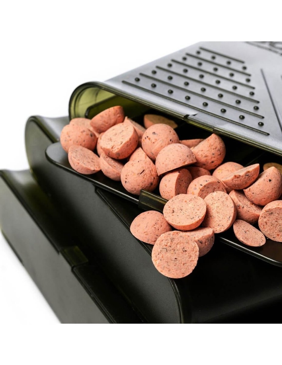 Outil d'appât de marque Ridge Monkey modèle Choppa en taille petite pour boilies 14 et 16 millimètres. Il est idéal pour couper et hacher de multiples boilies rapidement, efficacement et confortablement. Ses lames sont en acier inoxydable.
