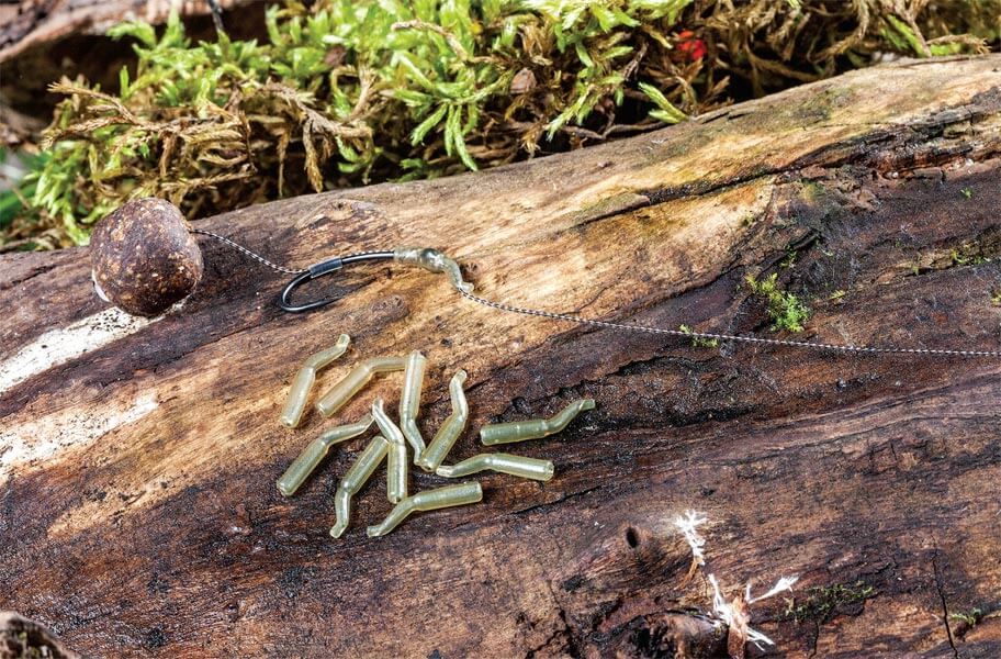 Accrocher l'aligneur brun transparent de la marque Extra Carppour donner du galbe à votre montage de pêche à la carpe.