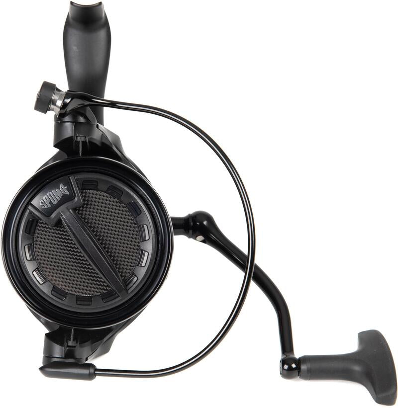 Moulinet de la marque Spomb} modèle X en Couleur noir, spécialement pour la pêche à la carpe.