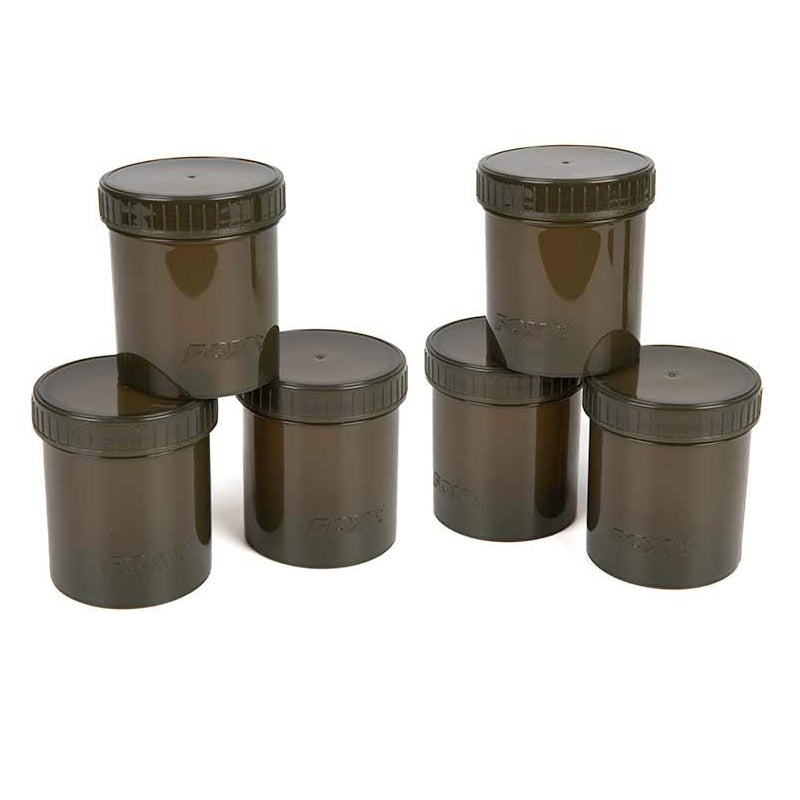 Paquet de 6 pots pour les appâts de la marque Fox ,modèle Bords, conçu pour le stockage en toute sécurité de tous les appâts à hameçons, en particulier pour la pêche à la carpe.