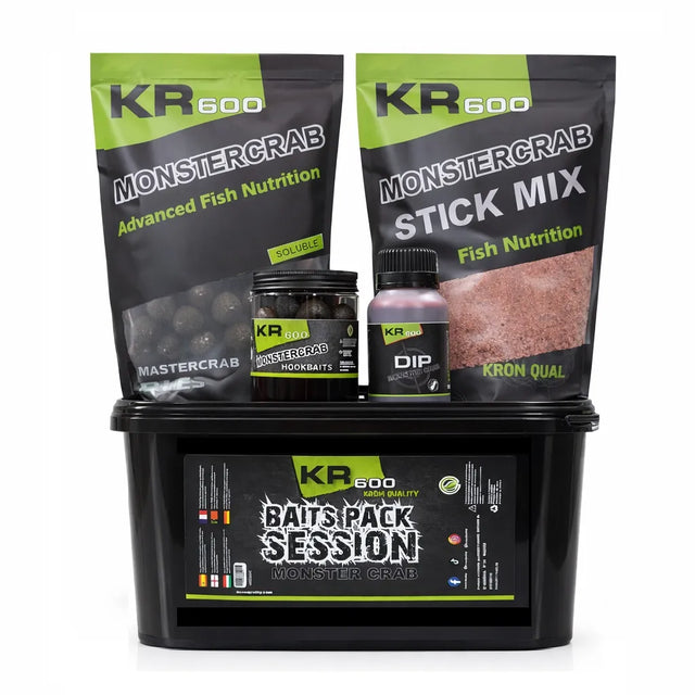 Beaucoup d'appâts Krom Quality gamme KR600 saveur Monster Crab, notamment pour la pêche à la carpe.
