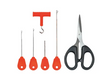 Set de 6 piezas de agujas con tijeras y aprietanudos de la marca Konger, especial para la pesca de carpfishing.